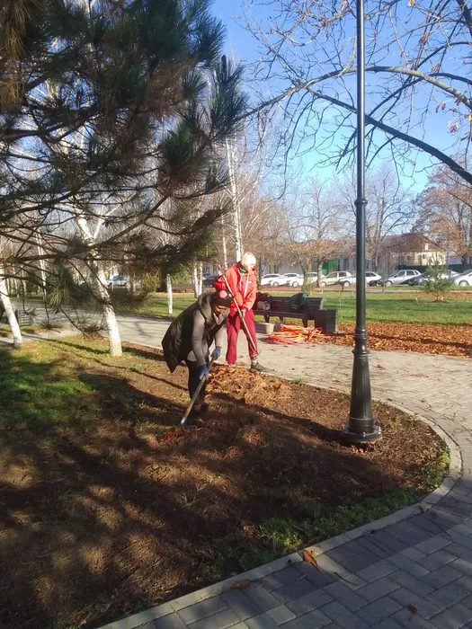 Рабочие очистили территорию от бытового мусора, листвы и природных остатков.