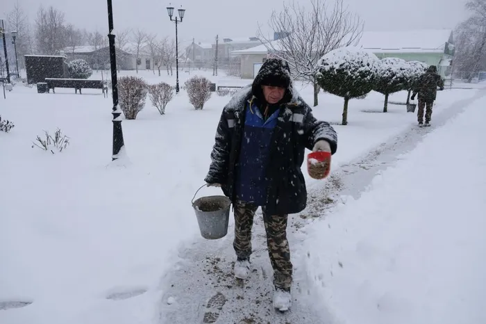 🧂 Посыпка дорог и пешеходных зон песчано-солевой смесью