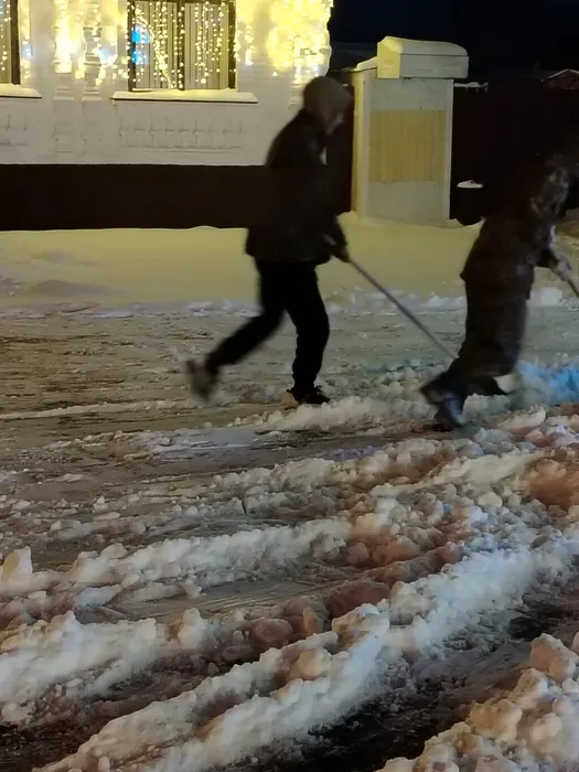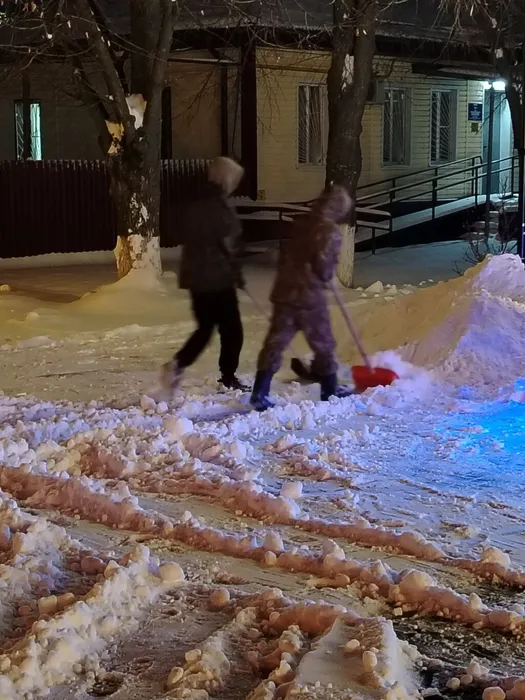 ❄️ Очистка пешеходных дорожек от снега с последующей посыпкой песчано-солевой смесью